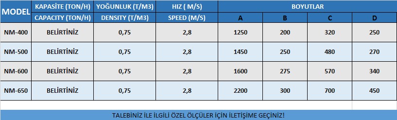 Özellikle ağır ve yüksek miktarda dikey taşınması gereken toz ve granül gibi yığın malzemelerin taşınmasında çok kullanışlı mekanik taşıma ekipmanlarıdır.