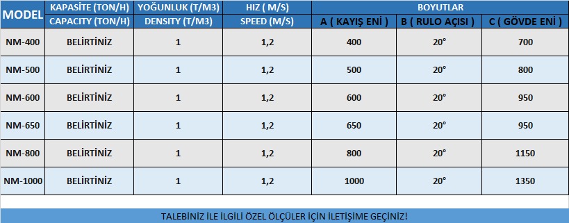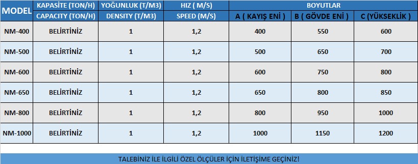 Ağır yük konveyörleridir. Ağır yüklerde ve dayanıklılık gerektiren yerlerde ürün transferi sağlar ve kauçuk bantın dayanımı sayesinde istenilen uzunlukta ve genişlikte imal edilebilir. Taşınması istenilen ürünün özelliklerine ve kullanılacağı alana göre kauçuk bant tipleri; paletli bant, yüzeyi desenli bant, düz bant, yan bariyerli bant çeşitleri ile her türlü ürünü taşımak için kullanılır.